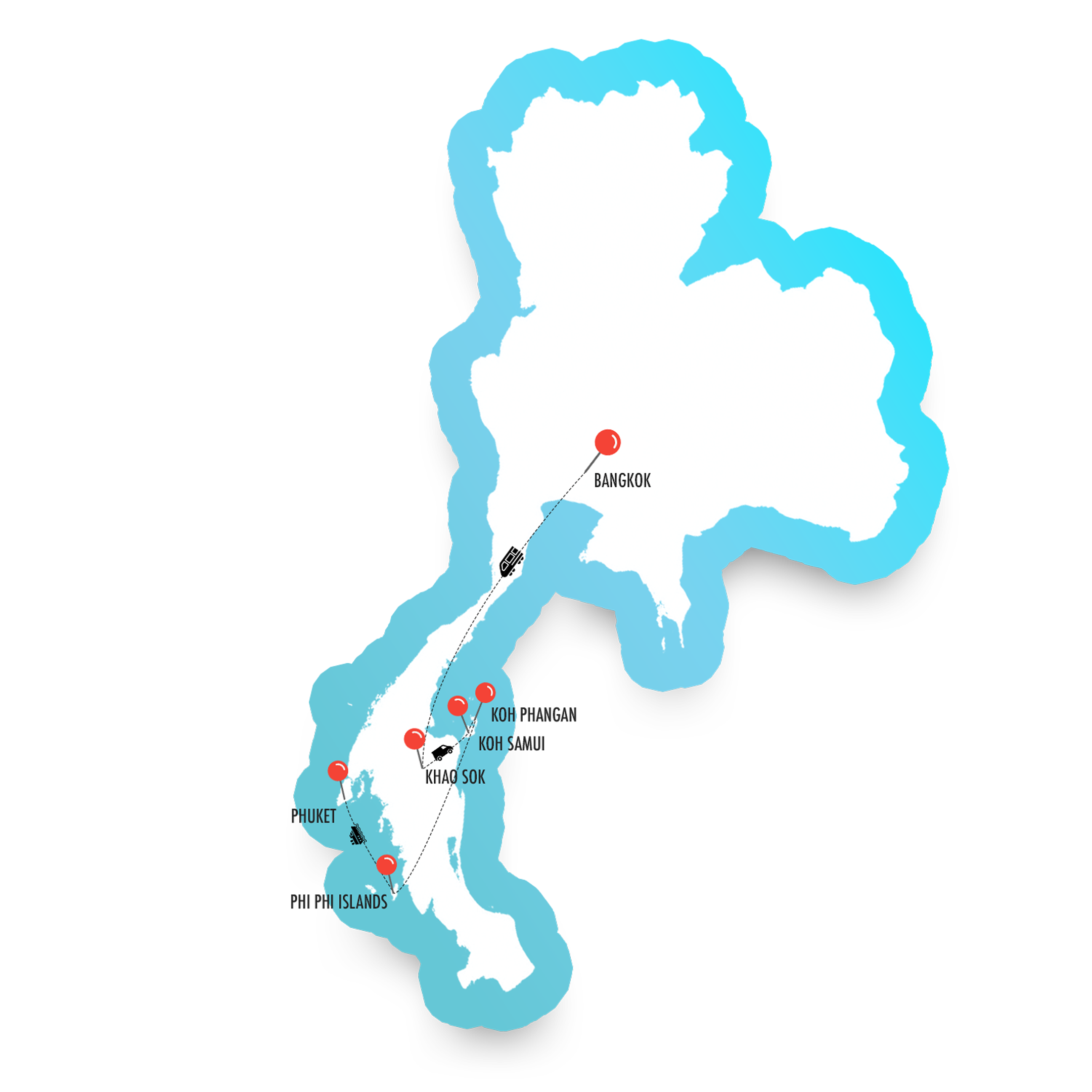 Stell dir vor: Neue Freunde kennenlernen im rasanten Bangkok, schwimmende Bungalows mitten im Dschungel, Inselhopping im türkisblauen Meer und legendäre Partynächte am Strand. Genau das ist unser Thailand Abenteuer 12 Tage – voller Action, Entspannung und neuer Freundschaften.