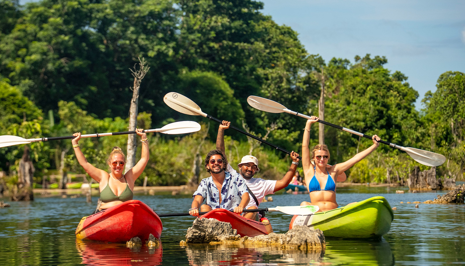 Bevor wir uns von Krabi verabschieden, paddeln wir mit dem Kajak durch die ruhigen Mangroven am Mirror Lake – umgeben von dichtem Dschungel und imposanten Felswänden. Am Nachmittag geht’s mit der Fähre zu unserem letzten Insel-Stopp: dem traumhaften Koh Phi Phi. Dort wartet zum Abschluss noch eine Wanderung zu einem ikonischen Sonnenuntergangs-Spot auf uns.