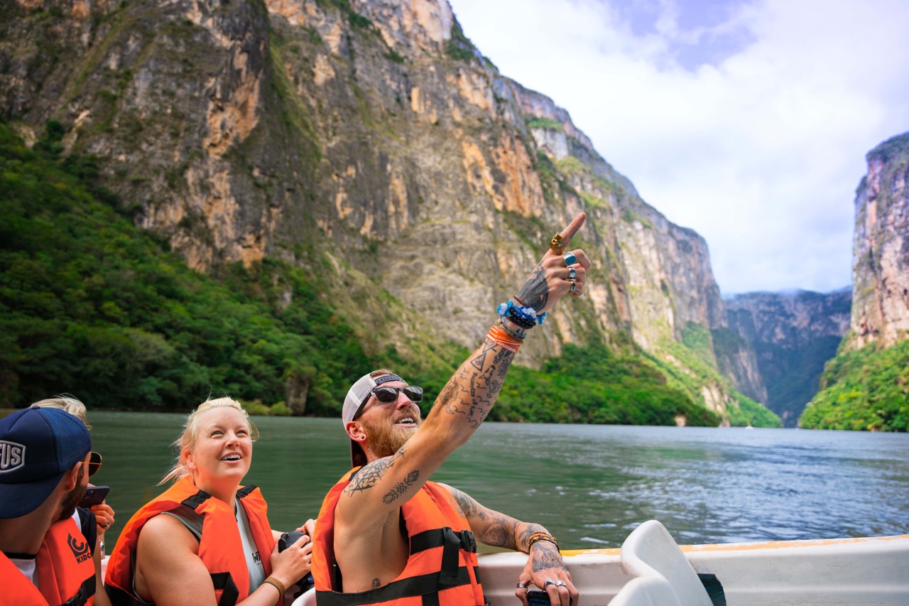 Wir steigen in ein einheimisches Boot und fahren durch die riesige Sumidero-Schlucht. Dabei sehen wir gewaltige Wasserfälle, üppige Dschungeltäler, halten Ausschau nach Affen und treffen sogar auf Krokodile! Dann geht es hinauf in die Berge zu unserem nächsten Ziel - der kultigen Stadt San Cristobal de las Casas. Genieße einen kurzen Rundgang und eine Pox-Verkostung - ein traditionelles Getränk aus der Region Chiapas - bevor du zu einem unglaublichen Abendessen aufbrichst.